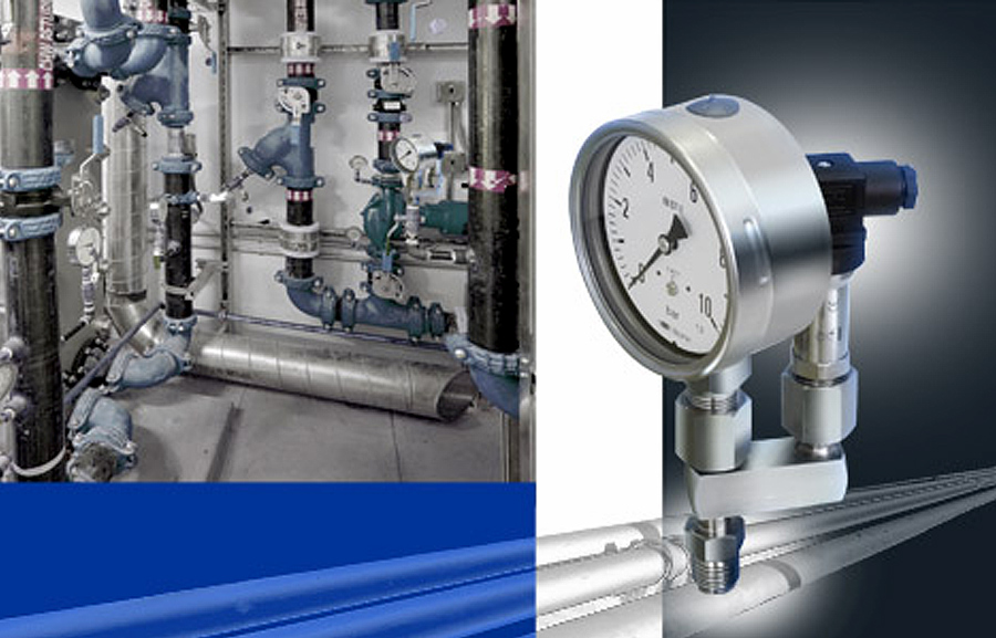 Since mechanical pressure gauges with integrated 4..20 mA transmitters are relatively expensive, the combination of two instruments through the ARID double adaptor offers a more economical solution. The fact that the ARID adaptor makes it possible to use two measuring instruments on only one pressure port on the process pipe saves further costs because the user is not required to provide additional pressure ports for the additional instrument.